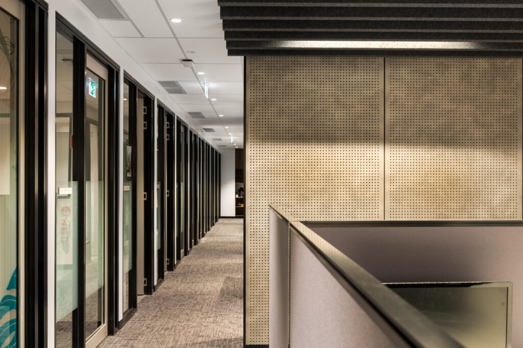 The tenant – a large accounting firm – required a modern, open office fitout, with managed acoustics for privacy, a foyer, and an adjustable meeting room to encourage client engagement and provide flexible arrangements.
